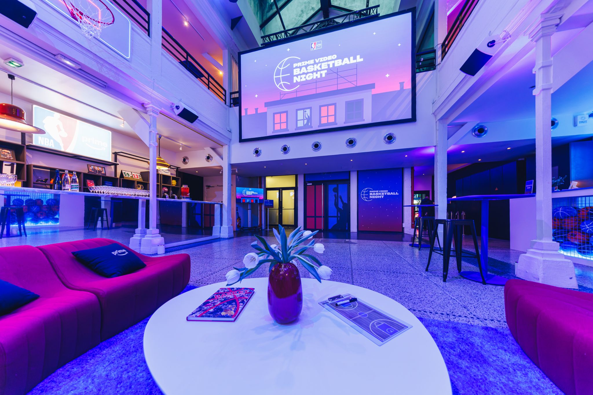 An immersive party to celebrate NBA arrival on Prime Video, transforming the venue into a "Hoops Hotel" by merging visual codes of hotel industry and sport.